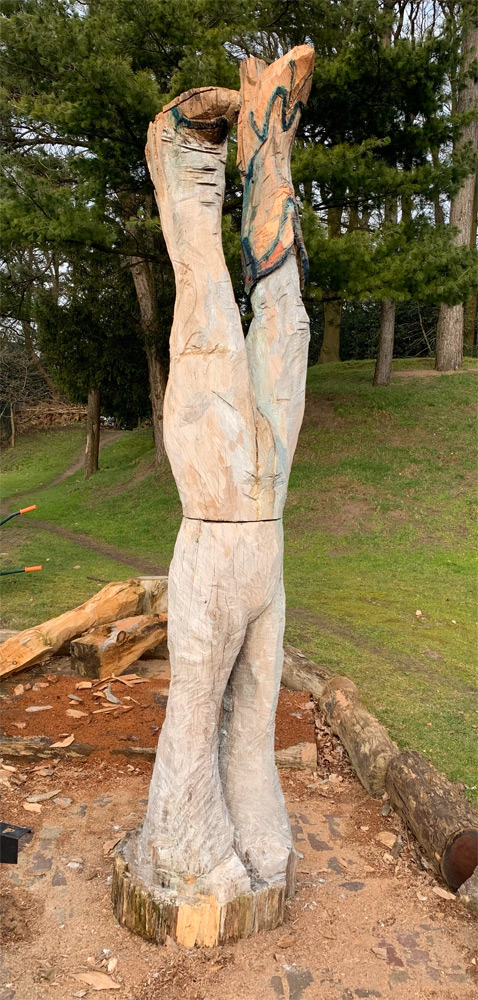 As a sculptor, you carry the tradition of sculpting with you. Since time immemorial, people have chopped, nicked, sawed into materials. Tradition also involves passing on the coherence of things, thus memory and future come together and form the reflection visible in my sculpture. Wood has it all in it, the history and the new future. I try to give a tree a new life and transform it into a sculpture. The craft is important to me here, not only sawing but also gouging with hammer and chisel. The traces of this are visible in the work. I hope that in this way I can pass on the energy of making. This is a walk in which the past and the new future coincide.