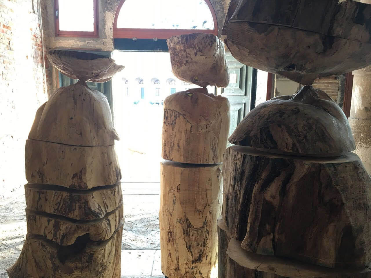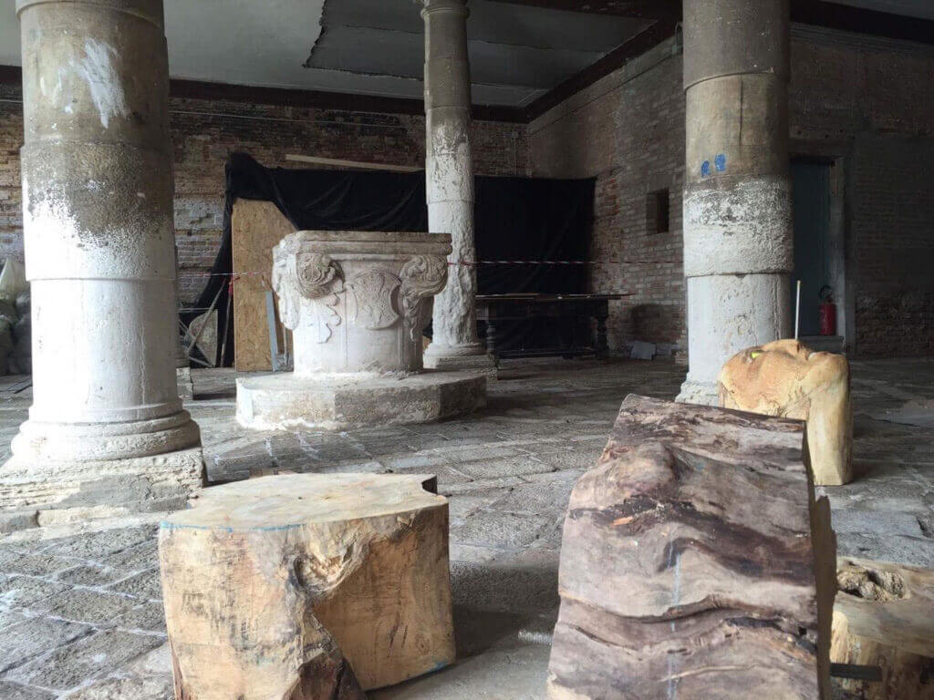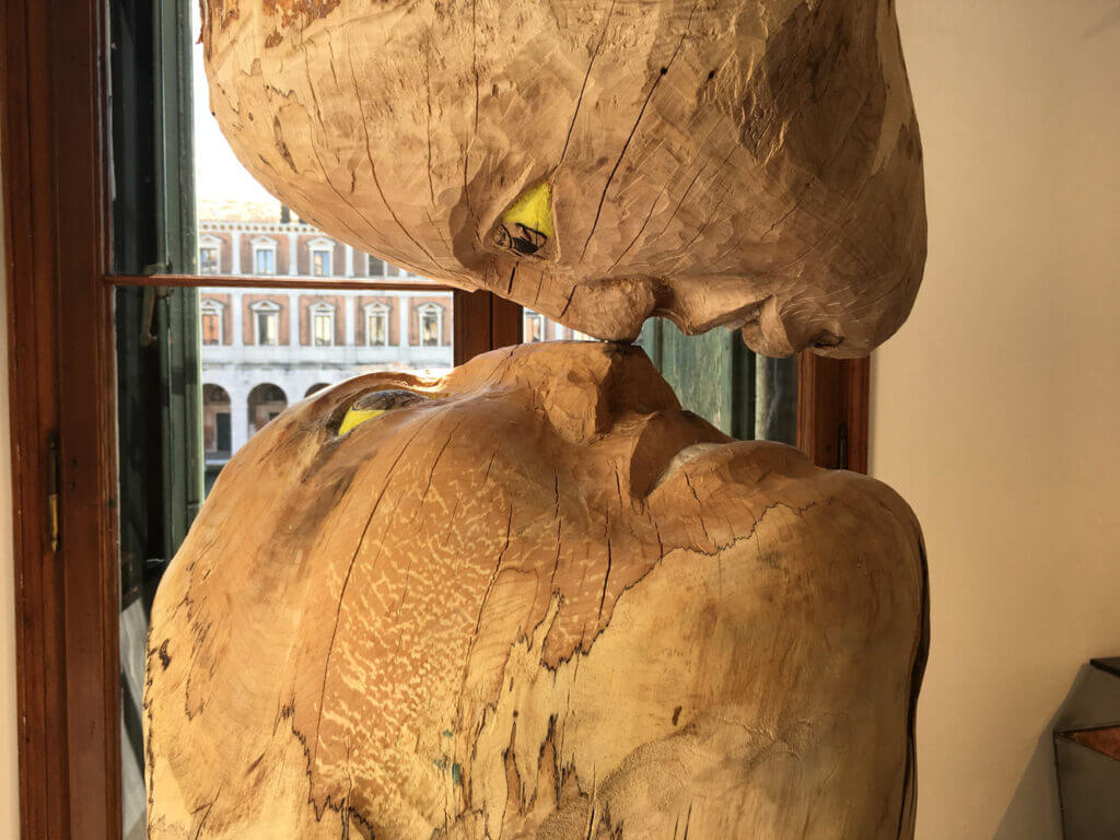 In Venice, Palazzo Michiel, beside the flowing water of the lagoon, three tree figures demonstrate that they can rotate about their axis. They are headstrong and bent on to be.
